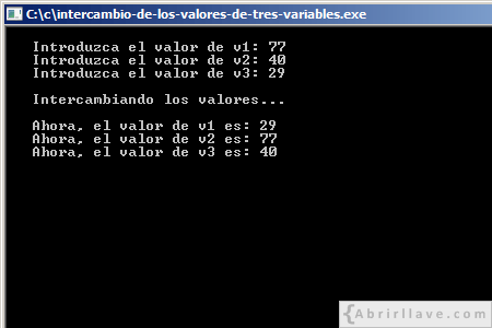 Ejercicio de lenguaje C - Intercambio de los valores de tres variables