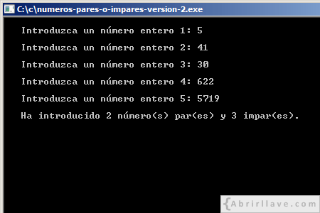 Ejercicio de lenguaje C - Números pares o impares (Versión 2 - Cinco números)
